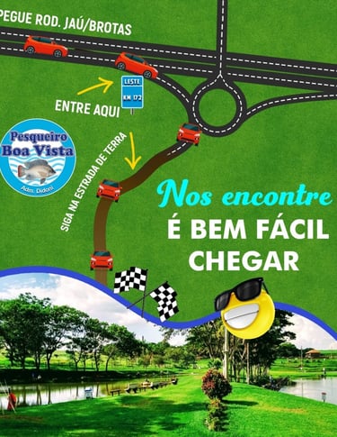 Pegue a Rodovia Jaú/Brotas (Engenheiro Paulo Nilo Romano) mantendo a direita. Ao avistar a placa do Km 172, entre a direita subindo a rampa que da acesso a estrada que liga ao pesqueiro. Chegando ali, falta pouco. Agora é só seguir pela estrada de terra observando as orientações das "plaquinhas" de sinalização do pesqueiro. É bem simples!